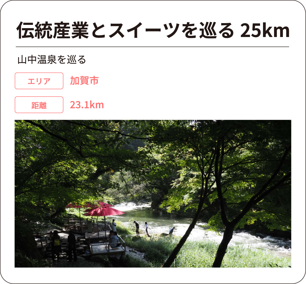自転車周遊におすすめのサイクリングコースや加賀の魅力的な情報が揃っています。