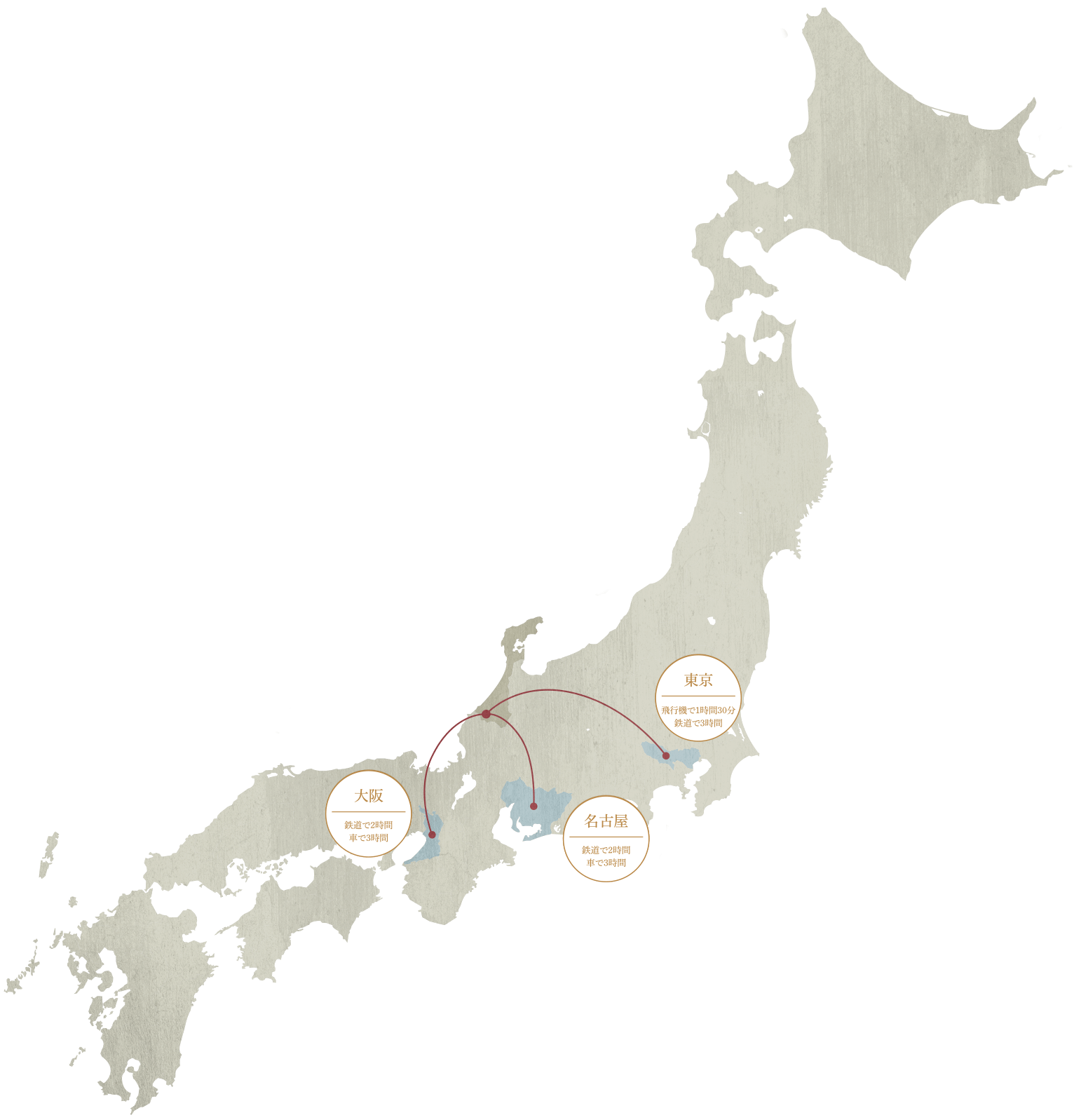 - 名古屋から約2時間30分(しらさぎ+北陸新幹線利用)
